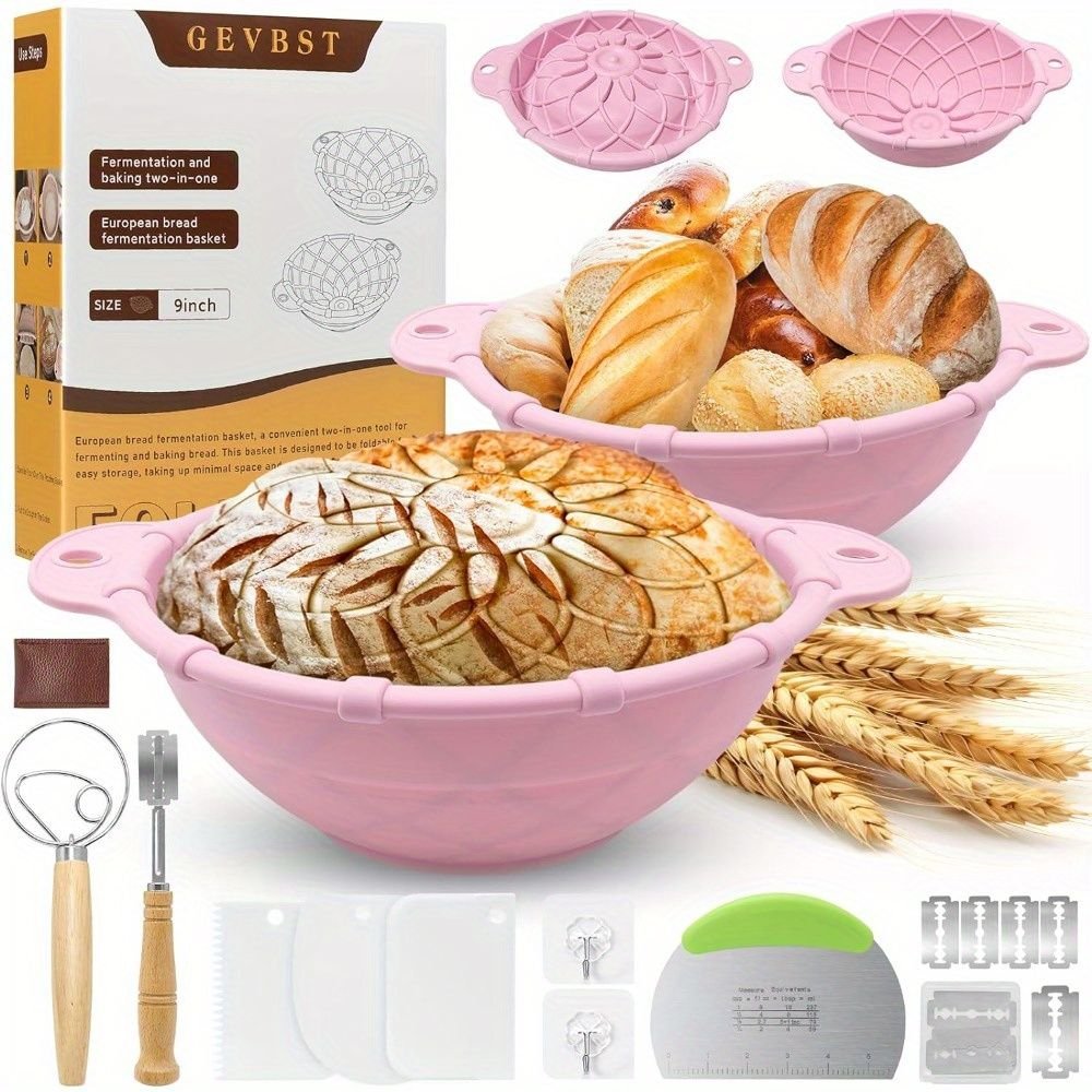1.Bread proofing basket set comes with 10 essential tools for all your baking needs. With 2 9-inch round silicone bread proofing baskets, 1 dough scraper, 3 plastic scrapers, 1 bread lame with 5 blades, 1 Danish dough whisk, and 2 hooks, Whether you're a beginner or a seasoned baker, complete kit is a kitchen essential. Let's start baking!