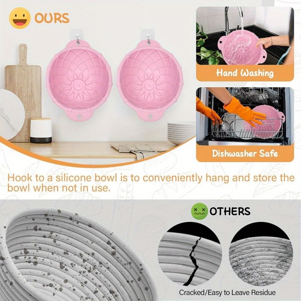2.Upgrade Thickened 410g bread proofing basket is made of food-grade silicone,It has good strength during bread transfer and fermentation, so you don't have to worry about cracking or deformation. a non-stick and heat-resistant material that is safe for food contact and free from harmful BPA. banneton bread proofing basket can withstand temperatures up to 446°F(230°C) and suitable for use in the dishwasher, microwave, and air fryer.