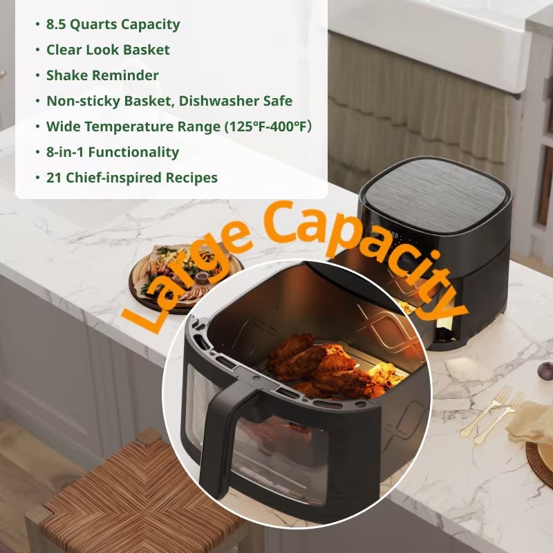 8.5 QT Large Capacity: The extra-large capacity design meets the needs of the whole family in one go, saving you time and effort by eliminating the need for multiple cooking sessions.