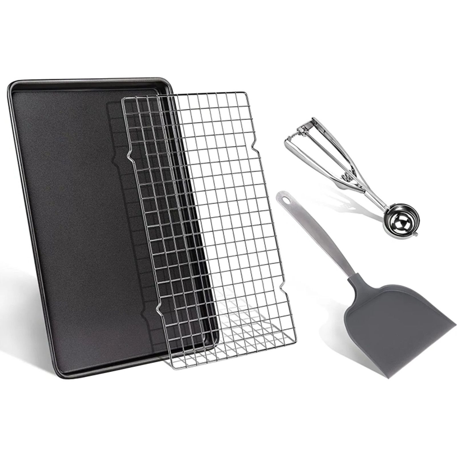 Cookie Sheets Non-stick Baking Sheet Set With Non-stick Jelly Roll Pan; Rack; Cookie Scoop; Spatula