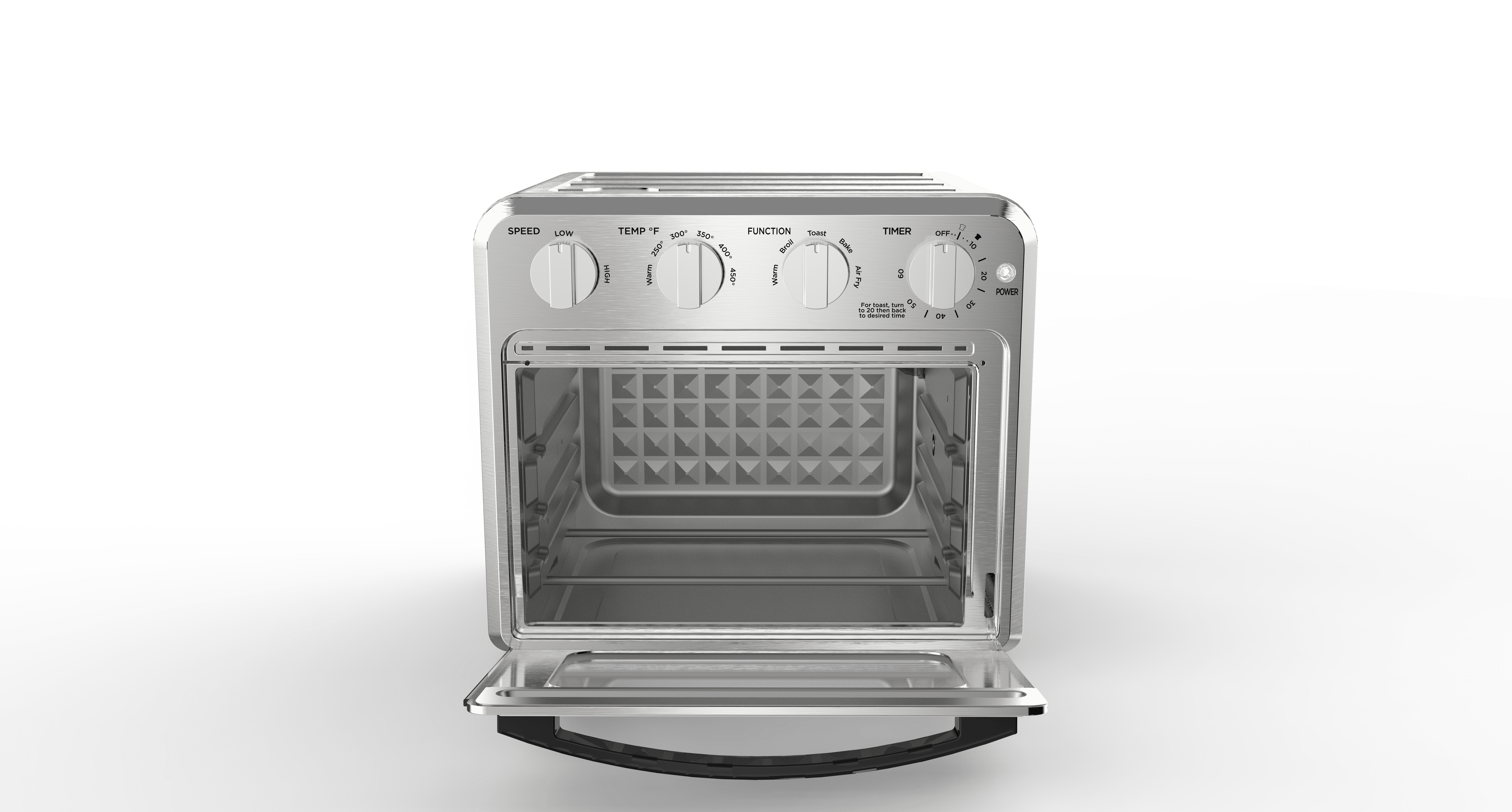 Offers Multiple Menu Options: Applied new technology of knob control , ensuring the more precise speed, function,time and temperature.It has 5 preset cooking functions(warm,broil,toast,bake,air fry), meet your food needs.Temperature range from Warm to 450℉ and 60 minutes Timer.