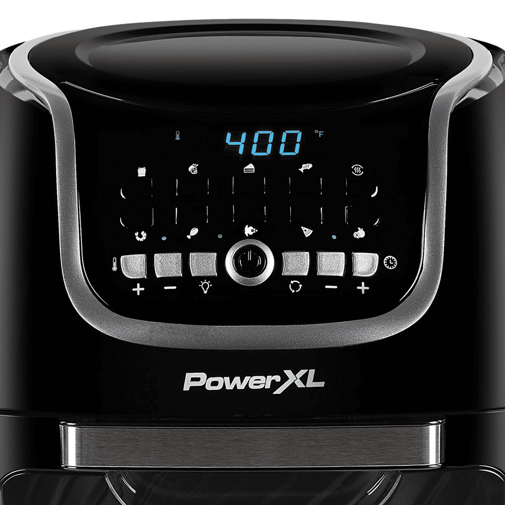 10-Quart Air Fryer by PowerXL #1 Best-Selling Air Fryer Brand*1700 Watts10 Pre-Programmed Settings Including ReheatAir Fry 12 oz. of French Fries per TrayRotisserie an Entire 4-lb. ChickenBake Cakes; Pies; Cookies & MoreProfessional Heating up to 400°Large Easy-Grip HandleTimer with Auto Shut-OffCord Length: 39.4 inchesDishwasher-Safe Parts – Effortless Clean-UpIncludes: Instruction Manual; Recipe Book; 3 Air Flow Racks; Drip Tray; Rotisserie Kit (Spit; Forks & Fetch Tool)6-in-1 multi-use design: Air Fry; Broil; Bake; Roast; Dehydrate; Reheat10 one-touch programs: French Fries; Steak; Chicken; Fish; Shrimp; Bake; Roast; Dehydrating; Pizza & Reheaterror.