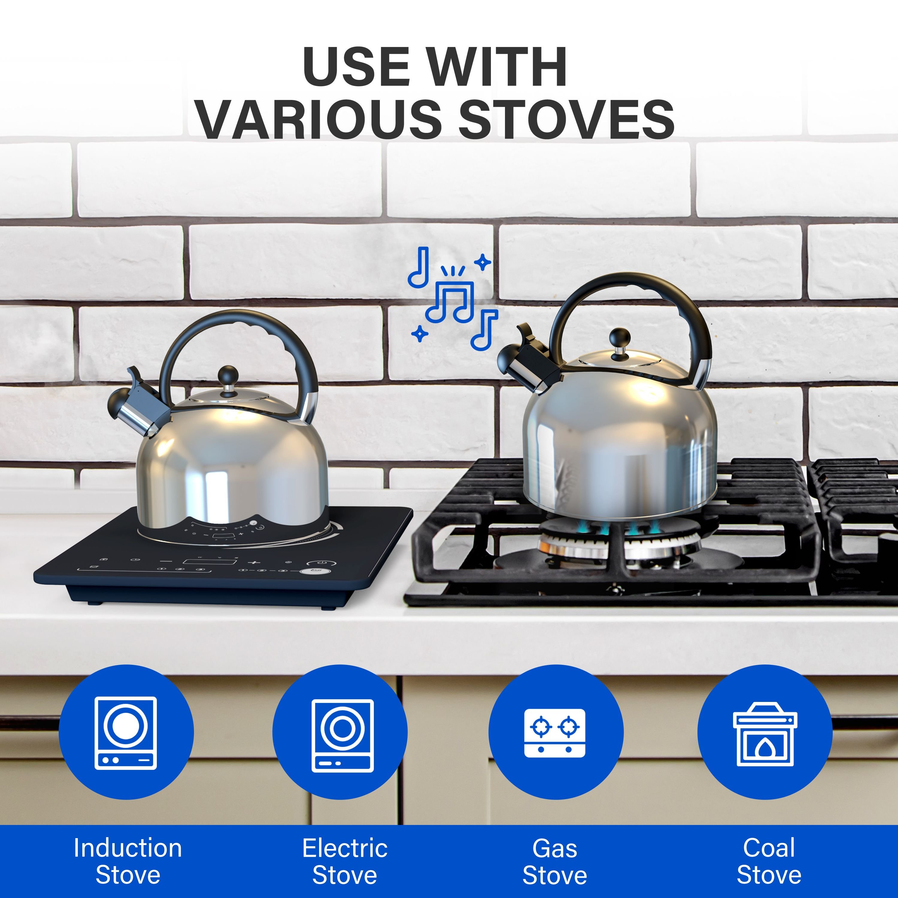 Applicable for Various Stovetops: The Stainless-steel tea kettle is suitable for most stove top: gas stove, induction stove, electric stove, ceramic stove, coal stove etc..